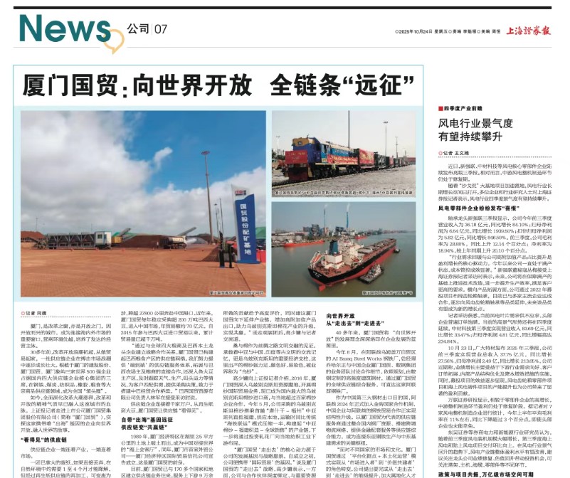 上海證券報 | 廈門國貿(mào):向世界開放 全鏈條“遠(yuǎn)征”。